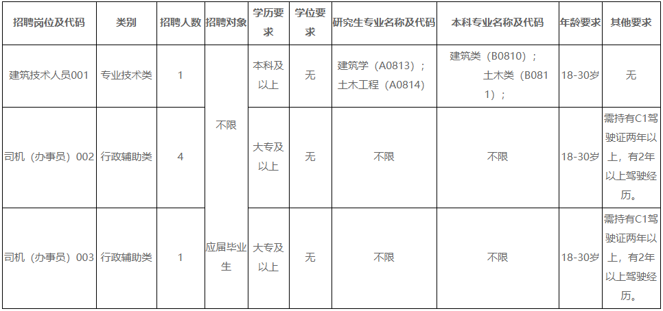 2.崗位為司機(辦事員),崗位代碼002,招聘對象為普通高等院校2022年應屆畢業(yè)生和社會上具有國家承認學歷的大學?飘厴I(yè)以上人員。