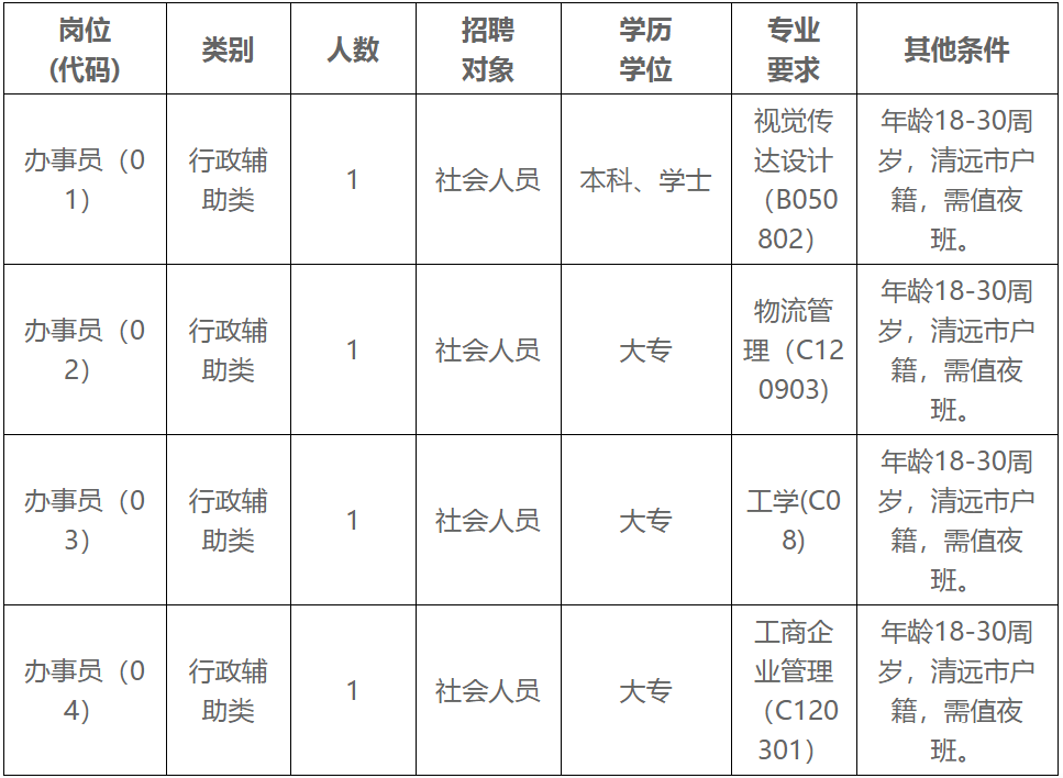根據(jù)工作需要,清遠(yuǎn)市清城區(qū)源潭鎮(zhèn)人民政府面向社會(huì)公開(kāi)招聘專(zhuān)項(xiàng)工作聘員4名,F(xiàn)將有關(guān)事項(xiàng)公告如下: