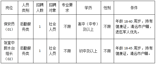 清遠(yuǎn)市清城區(qū)機(jī)關(guān)事務(wù)管理局因工作需要,根據(jù)《關(guān)于印發(fā)<清遠(yuǎn)市清城區(qū)機(jī)關(guān)事業(yè)單位專項工作聘員、合同制聘員以及后勤服務(wù)類人員管理辦法>的通知》(城區(qū)人社〔2022〕20號)文件精神,面向社會公開招聘后勤服務(wù)類人員2名,現(xiàn)將有關(guān)事宜公告如下: